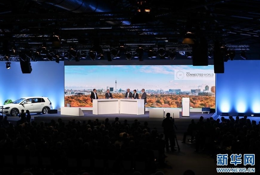 這是3月15日在德國柏林拍攝的博世“互聯世界”物聯網大會現場。由德國博世公司主辦的博世“互聯世界”物聯網大會15日至16日在德國柏林舉行。本次大會上有超過3000名企業管理人員和開發者共同探討物聯網的發展趨勢和在現實產業價值鏈內的應用,同時,超過80家參展商將在大會期間展示他們對物聯網的成功運用。