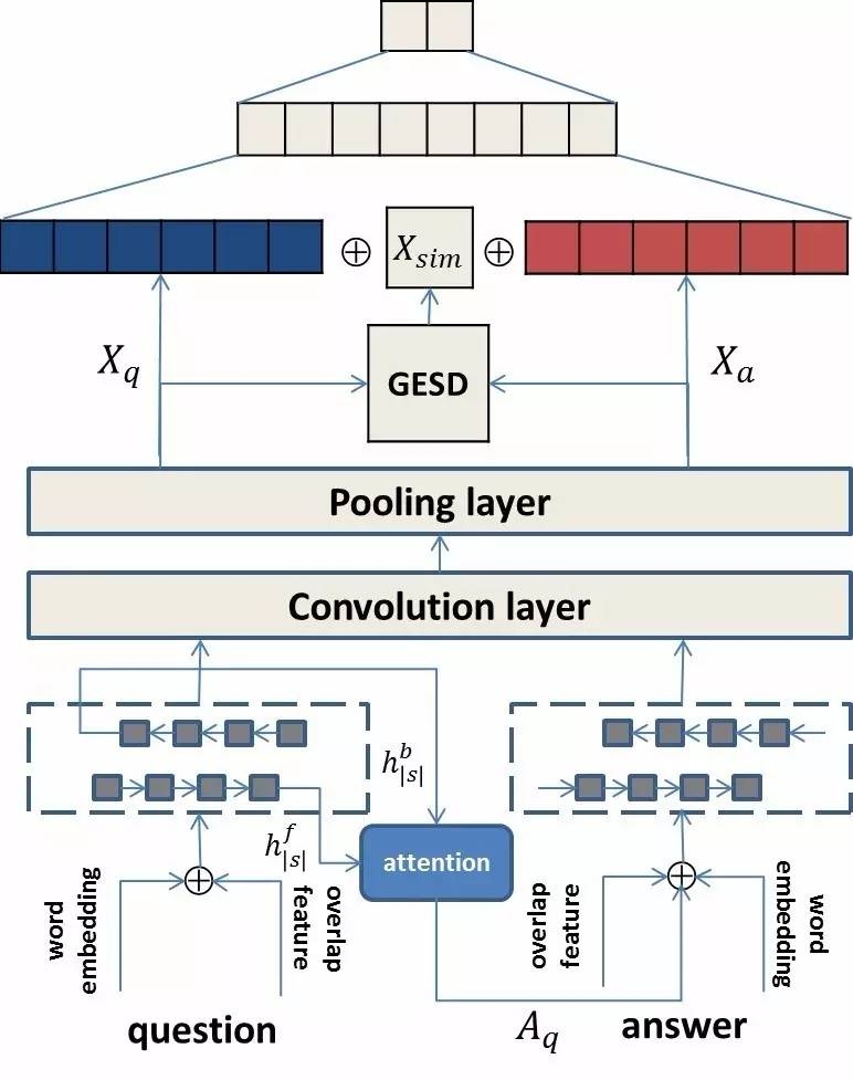 近期,我們團隊與數據技術及產品部兄弟團隊共同投稿一篇 KDD 文章,其中我們提出了一種新的文本語義編碼算法 conv-RNN(如圖 2 所示)。該模型在參考了循環神經網絡與卷積神經網絡的同時,進行了進一步的文本語義編碼優化。conv-RNN 不僅保留了 RNN 模型對不定長跨度的上下文依賴的編碼能力,還利用了 CNN 模型中常用的最大池化機制,用以更加簡潔地從文本數據所蘊含的豐富信息中抽離出不同的信息表征。此外,在 conv-RNN 的基礎上,我們還提出了一種新的智能問答(answer selection)模型以及文本分類(sentence classification)模型。為了充分驗證所提出的模型的效果,我們分別選取了智能問答及文本分類領域的一批標準數據集,與當前業界的最新成果進行了對比驗證。