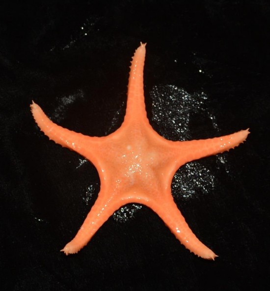 “發現”號采集到的海星(8月14日攝)。 8月14日,中國新一代遠洋綜合科考船“科學”號搭載的“發現”號遙控無人潛水器在西太平洋下潛考察卡羅琳海山,采集到豐富生物樣品。新華社記者 張旭東 攝