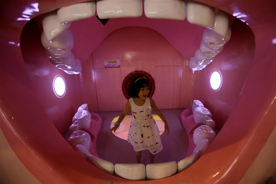 7月22日,小朋友和家長在廈門科技館內體驗光影藝術展。暑假期間,許多小朋友在家長的陪伴下來到廈門科技館參觀學習科學知識、體驗科技魅力。新華社發(曾德猛攝)