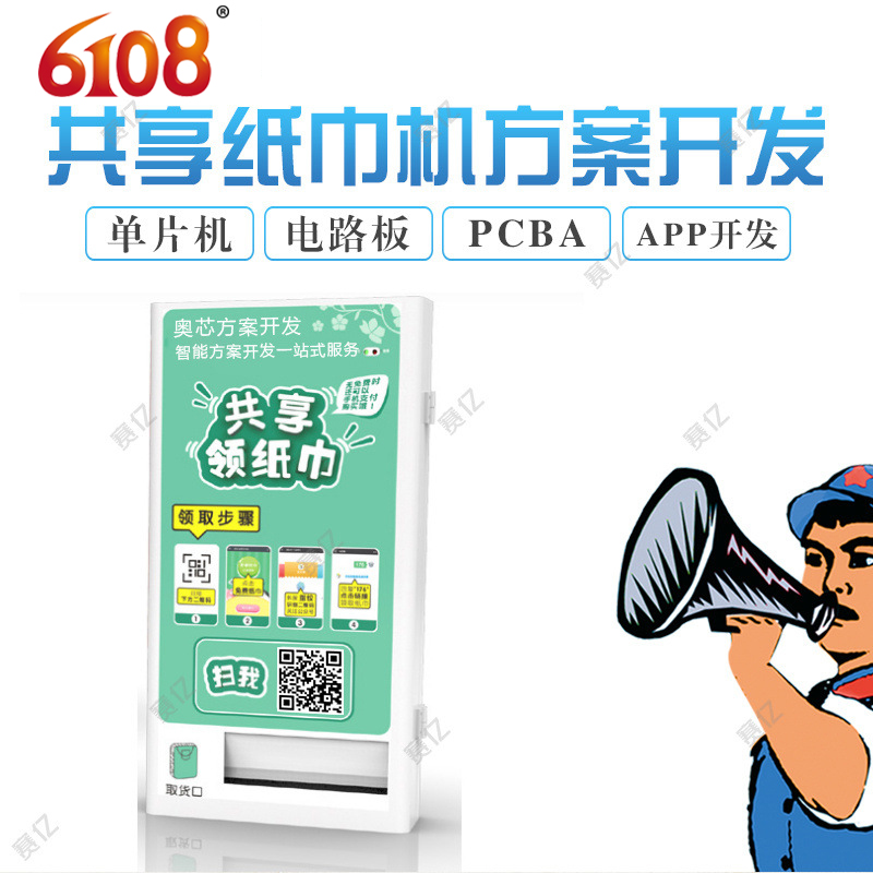 2、掃碼領紙巾:用戶可以通過共享紙巾機掃一掃共享紙巾機就可以領取紙巾,紙巾機會根據程序設置好為用戶的出紙量出紙。