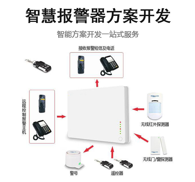2、智慧防盜報警器系統系統化設計。根據實際情況來設定防區的屬性。報警主機可根據實際的需要接上電話線,當發生警情的時候電話通知用戶或110。