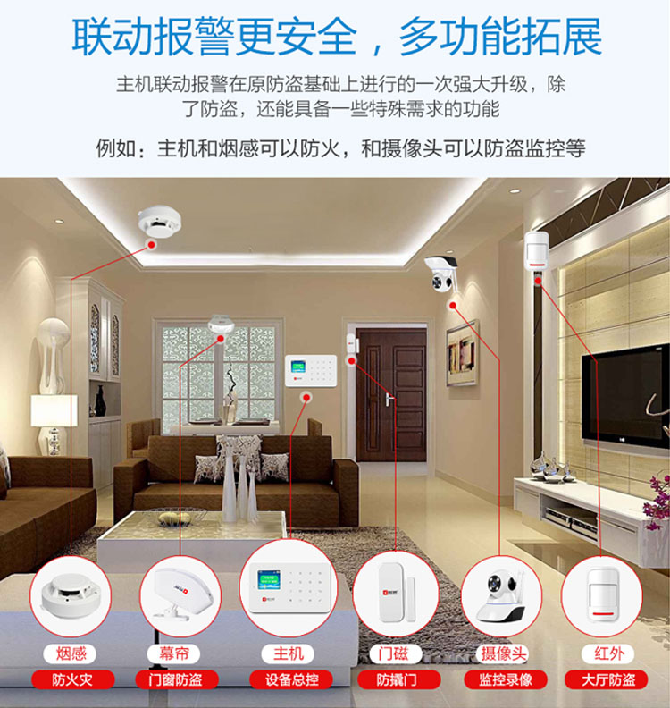 4、多種布/撤防方式。智慧防盜報警器系統通過密碼布、撤防,系統設置更安全,可根據實際情況對單個防區進行撤布防。