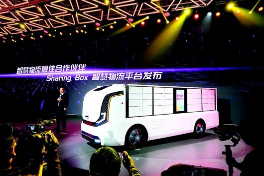 圖為:9月17日,基于5G環境、汽車“五化”(輕量化、電動化、智能化、網聯化、共享化)趨勢而研發打造的無人駕駛智慧物流平臺亮相武漢。東風汽車股份推出的此款“Sharing Box智慧物流平臺”采用智能化前沿技術,將結合場景應用,提供智慧物流合作解決方案,助力打造城市智慧物流生態圈。 (視界網 王虎 攝)