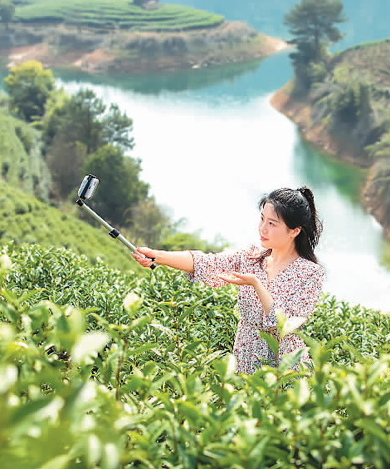 近日,浙江省杭州市淳安縣姜家鎮中心小學一位語文老師通過網絡直播上習作課,在茶園現場講解和茶有關的傳統文化。毛勇鋒攝(人民視覺)