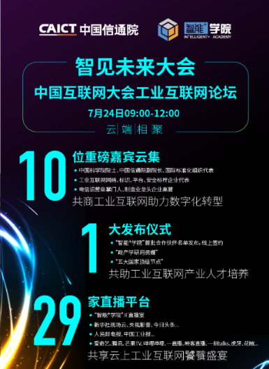 7月24日!“智見未來大會——暨中國互聯網大會工業互聯網論壇”與你相聚云端