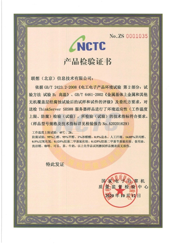 安全高效 品質可靠:聯想服務器獲國家級權威NCTC認證
