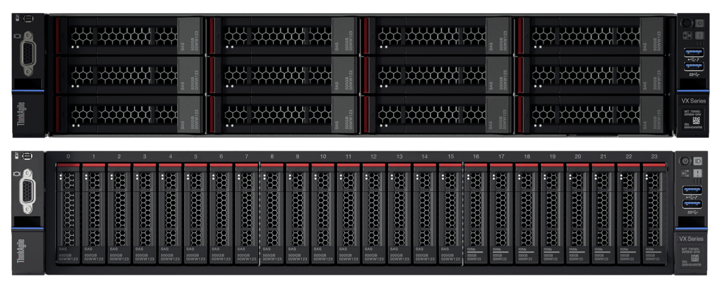 ● ThinkAgile VX5575:為快速、高容量存儲應用提供密集型存儲“2U”解決方案,包括電子郵件管理、數據和分析。