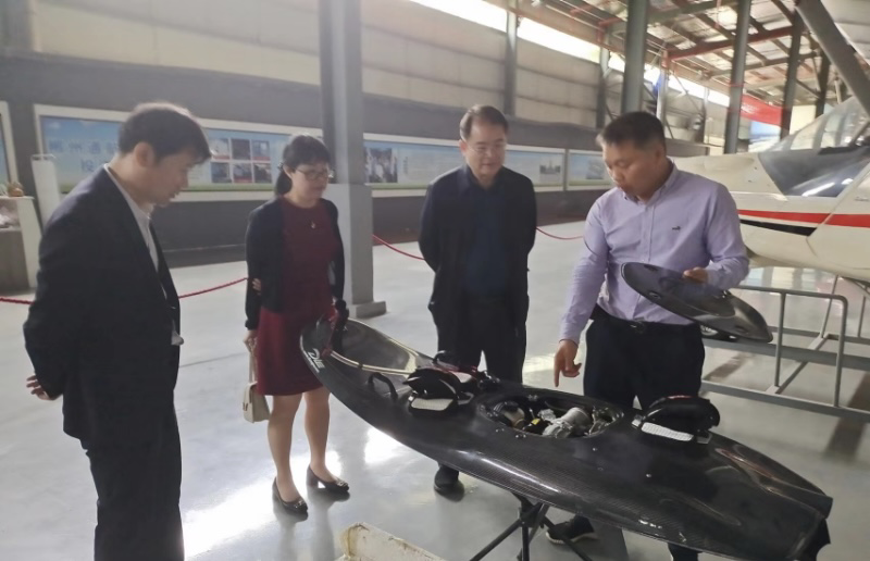 在湖南翔龍飛機有限公司,調研組聽取了企業的發展歷程。湖南翔龍飛機有限公司成立于2017年3月,公司以通用飛機、大型工業無人機的研發、制造為主業,依托全球化供應鏈體系,協同產業鏈上下游伙伴,實現軍民融合兩翼齊飛。目前,桂陽基地生產線已經達到穩定生產狀態,具備年產量100架的生產能力。湖南湘晨通航有限公司表示,在立足通航產業這一主業的同時,開始布局恒溫無限游泳機、共享浴室等產業,力求實現高質量發展。