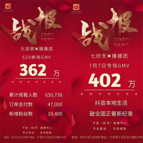 發布時間:2022-07-20 16:24:34 | 來源:中國網 | 作者:汪慧 | 責任編輯:趙茜滬上阿姨專場GMV突破56萬元;九田家6月29日單場GMV超362萬元;七欣天7月7日專場GMV突破400萬元大關……連日來,在位于浙江前洋經濟開發區的寧波(前洋)直播中心,各個自營直播帶貨團隊捷報頻傳。在這些團隊熱火朝天的“攻勢”下,抖音本地生活頻道全國正餐的各類帶貨數據屢屢刷新紀錄。