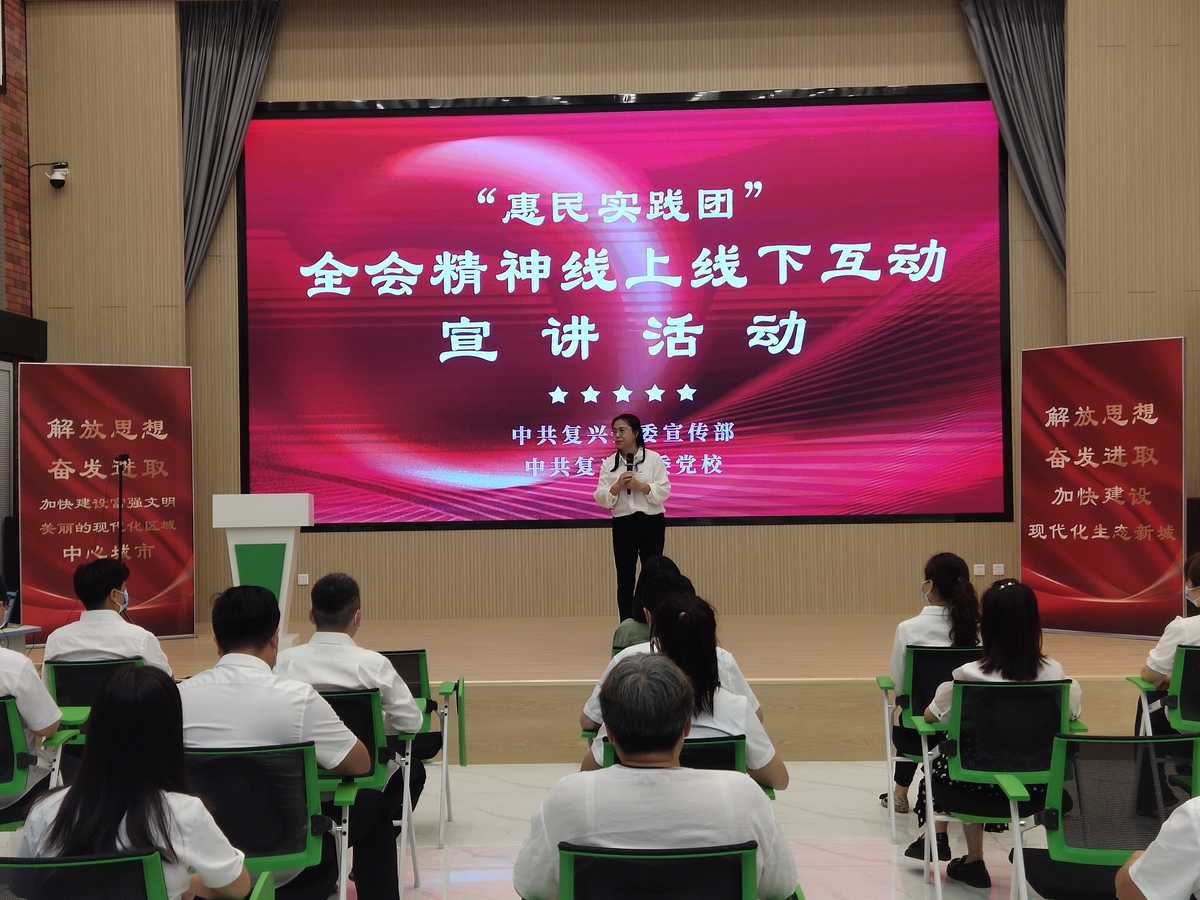 區委黨校講師范艷艷通過比對省、市、區三級全委會文件,對“解放思想、奮發進取”精髓進行了詳細闡述,并對市委和區委會議報告和實施意見深入解讀。宣講主題鮮明、內容豐富、重點突出,第一時間將全會精神傳達到全區上下,真正做到了上接天線、下接地氣,跑出了復興宣講加速度。