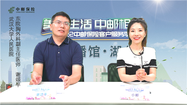 9月7日,中郵保險湖北分公司在“美好生活中郵相伴”第六屆客戶服務季期間,特邀知名醫生開展了健康知識名家直播館湖北站第一場活動。下午3點半,武漢大學人民醫院東院胸外科黨支部書記、副主任醫師謝頌平做客直播間,向社會大眾分享“肺腑之言”,普及肺部疾病防治及肺部保養相關的健康知識。