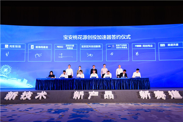 11月15日下午,“先進智造科技創新——新技術、新產品、新賽道”主題活動在寶安國際會展中心舉辦。會上,寶安區攜手天使投資引導基金、前海方舟、同創偉業、英諾天使基金、元生深圳天使基金等機構共同簽署《寶安桃花源創投加速器戰略合作框架協議》,依托寶安桃花源科技創新生態園獨有的生態資源,匯集廣泛知名的投資機構,致力于以更長期的陪伴與服務,見證更多高精尖項目和創新團隊落戶與成長。