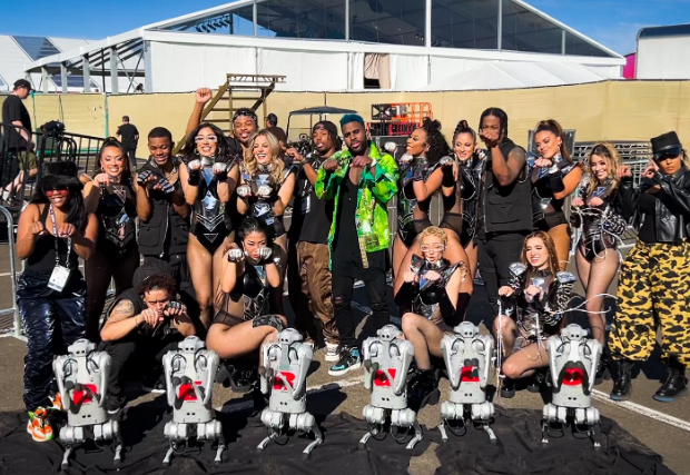 為了能在這場超級盛宴中實現完美的現場演出效果,Jason Derulo舞蹈團隊還專門為機器狗設計了相融的舞蹈動作,同宇樹的工作人員、機器狗Go1一起連續奮戰,最終呈現出一場時尚與前沿科技融合的視覺盛宴。