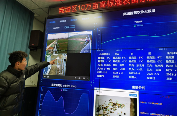 南陽宛城區智慧農業控制中心。南陽市宛城區委宣傳部供圖2月6日下午,河南省開封尉氏縣邢莊鄉蘆木張農機市場,農民在選購農機。尉氏縣委宣傳部供圖