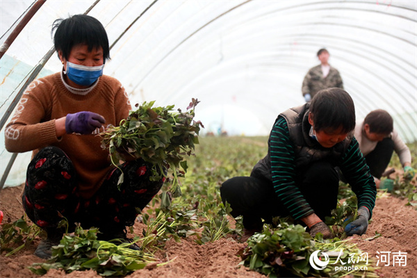 開封市尉氏縣水坡鎮北緯塢村同興種植合作社紅薯育苗基地開展紅薯育苗工作。人民網霍亞平攝?