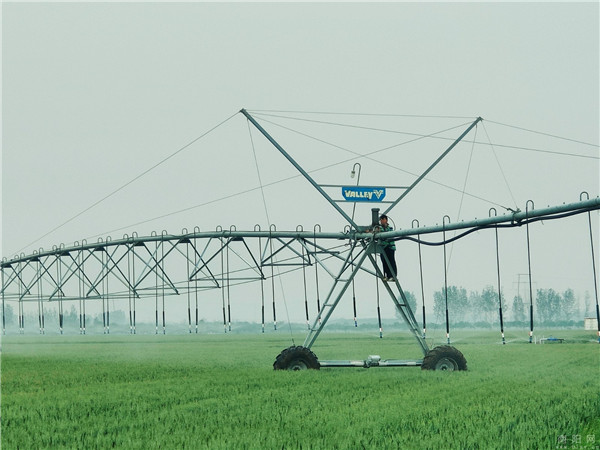 發布時間:2023-04-24 10:13:45 | 來源:南陽網 | 作者:時君洋 李樹嫻 | 責任編輯:趙茜4月20日是谷雨節氣,正是小麥拔節孕穗抽穗期。在河南省南陽市鎮平縣彭營鎮西王莊村的小麥地里,該縣瑞達農業服務有限公司新投用的智能化農機裝備指針式噴灌機正在給麥田澆水,為小麥豐產豐收打下基礎。