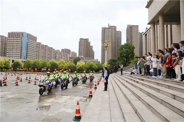 上午9點半,警寶們在警爸警媽的陪伴下,陸陸續續來到局大院的集合場地。交警大隊的鐵騎們騎著警用摩托閃亮登場,曲線繞樁、站立敬禮看得警寶們直呼:“叔叔們真帥!”特警隊員們跑步上場,一套擒敵拳打得行云流水,每個戰術動作身手敏捷、矯健有力,贏得了警寶的陣陣掌聲。
