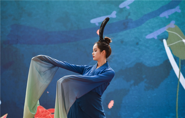 開幕式現場,一曲《只此青綠》緩緩拉開十里荷廊序幕,在舞蹈演員極具感染力的動作中詩意舞蹈與荷花盛景相結合,一幅如詩如畫的中國風畫卷呈現在觀眾面前。