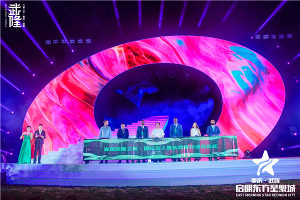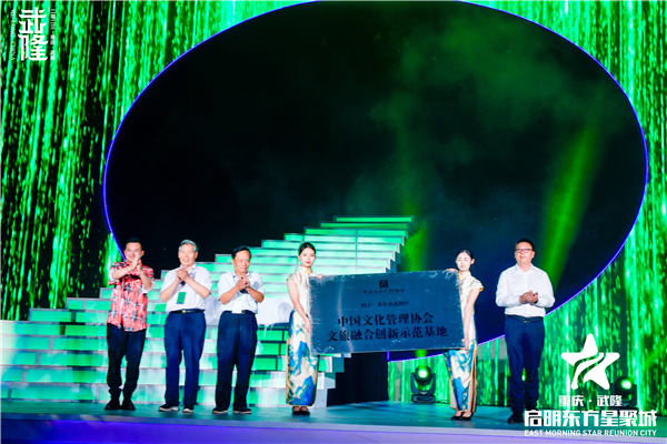 當晚,馬里駐華大使、津巴布韋駐華使館公使銜參贊、希臘駐華使館文化專員、巴哈馬駐華使館文化專員、北馬其頓駐華使館旅游專員共同上臺啟動了“發現武隆之美國際友人武隆行”活動。中國文化管理協會更在大會上向重慶市武隆區授予了“中國文化管理協會文旅融合創新示范基地”的稱號。中國文化管理協會主席梁國揚,副主席徐國寶親自為基地啟幕。