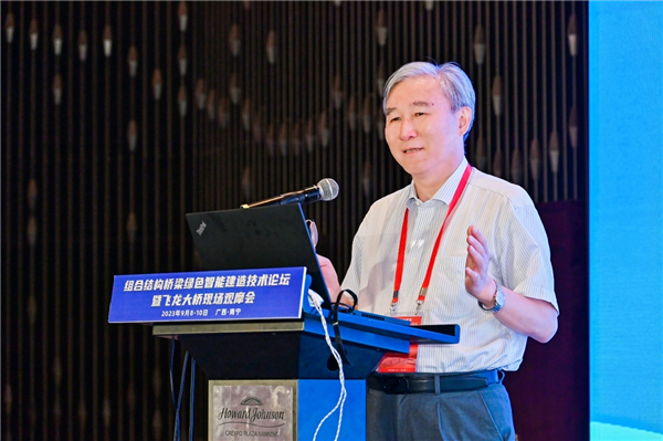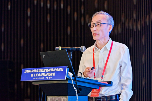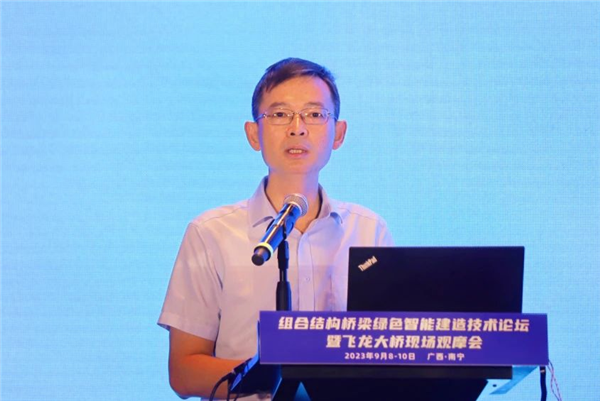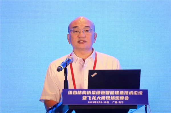 廣西北部灣投資集團有限公司黨委副書記、副董事長、總經理黃學軍也提到:一直以來,堅持把創新橋梁技術、提升橋梁建造水平與科研實踐緊密結合,先后高標準、高質量完成多座世界級橋梁的建設任務。下一步,也將推動組合結構橋梁綠色智能建造技術邁上更高臺階,為新時代交通事業發展作出新的貢獻。