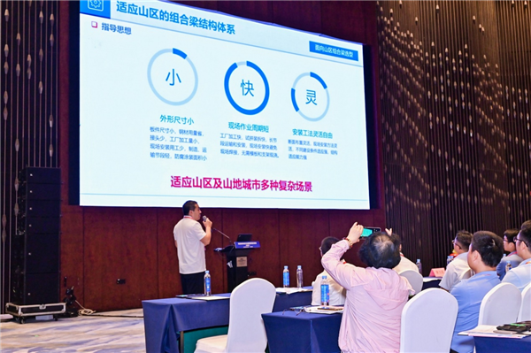 為持續探索與實施組合結構橋梁綠色施工的創新做法,此次會議還設置了以“波形鋼腹板橋梁創新與應用”和“組合結構橋梁綠色智能建造”兩個分會場。多位行業學者、專家、從業人員帶來了《西北黃河流域特長聯大跨徑波形鋼腹板橋梁設計建造實踐與探索》《波形鋼腹板組合梁橋技術創新及跨徑200米級技術難題》《安徽省鋼混組合橋梁技術發展與實踐》《主跨280m寬幅部分斜拉橋——培森柳江特大橋綠色快速建造關鍵技術》等主題報告。分享前瞻觀點,解鎖組合結構橋梁綠色發展的“創新密碼”。