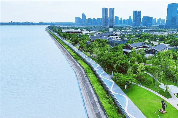 之江綠道跨濱江、蕭山兩區,將整個沿江景觀帶貫通,展現了杭州城區的都市風華。蕭山段在錢塘江堤岸的基礎上設置了一條寬約6米的彩色瀝青跑道,跑道上配置BOSE音響;綠道沿線設有驛站、便民服務中心等,并配套雕塑公園以展示蕭山潮文化和越文化,沿江綠道品質進一步提升。步行在綠道上,人們可以欣賞江濱公園的綠意盎然,盡情體驗潮動浙江的亞運氛圍。