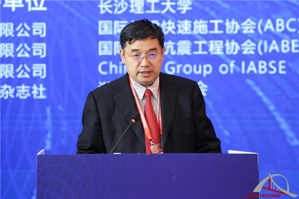 交通運輸部專家委員會主任、原總工程師周偉;湖南省交通運輸廳黨組成員、副廳長羅恒;湖南建設投資集團有限責任公司董事長蔡典維;中南大學校長、中國工程院院士李建成;中國工程院院士、全國工程勘察設計大師、中國交通建設股份有限公司首席科學家、中國公路學會橋梁和結構工程分會理事長、《橋梁》雜志社理事長張喜剛分別在開幕式上致辭。