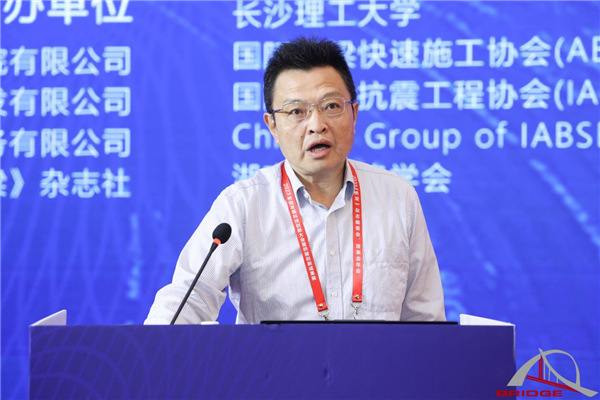本次大會報告,由交通運輸部科技司原司長龐松和中國土木工程學會橋梁及結構工程分會理事長、同濟大學教授、《橋梁》雜志編委會副主任肖汝誠共同主持。