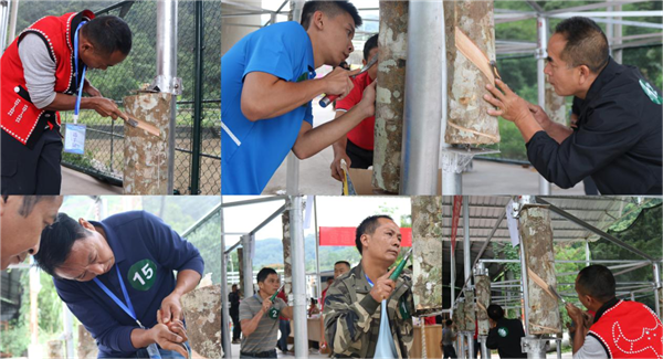 在樹樁割膠技能比賽現場,氣氛熱鬧而緊張,場地上固定著整齊的橡膠樹樁,參賽選手們目不轉睛地盯著刀尖方向,一手緊握膠刀、一手壓住刀身,在樹皮上輕快地揮舞,邁著交叉步平穩向前移動。下刀準、行刀穩、收刀快,選手們用最短的時間、最快的速度、最好的技術展現著高超技能。
