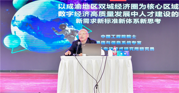 中國工程院院士、西南電子電信技術研究所研究員陳鯨以《以成渝地區雙城經濟圈為核心區域數字經濟高質量發展中人才建設的新需求新標準新體系新思考》為題作了主旨報告。陳鯨院士在報告中強調,成渝地區雙城經濟圈科技創新正面臨著新的國際競爭形勢,增強自主創新能力,提升原創能力和關鍵核心技術突破能力,必須建立高質量人才自主培養體系,打造一支愛國奉獻、團結協作、具有創新自信、敢于攻堅克難的高水平創新隊伍,才能把科技發展的主動權牢牢掌握在自己手里。