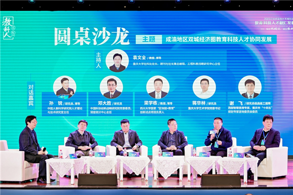 中國人事科學研究院人才理論與技術研究室主任孫銳,中國科協創新戰略研究院黨委委員、調查統計中心主任鄧大勝,四川大學國家“區塊鏈+教育”創新試點項目負責人梁學棟,重慶大學藝術學院黨委書記蔣華林,西部智聯首席專家、重慶市“十四五”規劃專家咨詢委員會委員謝飛等五位資深專家圍繞“成渝地區雙城經濟圈教育科技人才協同發展”議題,從教育發展、科技研發、人才聚集、創新驅動等多個維度開展了精彩紛呈的觀點碰撞和深入探討。