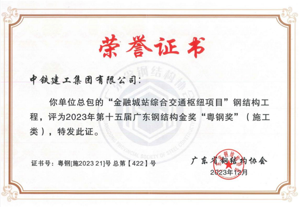 發布時間:2023-12-22 13:35:14 | 來源:中國網 | 作者:張鐘源 | 責任編輯:趙茜2023年12月17日,廣東省鋼結構協會在廣州隆重召開了第六屆五次理事會(擴大)會議暨技術交流會,會上對第十五屆廣東省鋼結構金獎(簡稱“粵鋼獎”)獲獎單位及個人進行了頒獎表彰。其中,中鐵建工集團第五建設有限公司金融城站綜合交通樞紐項目榮獲第十五屆廣東省鋼結構金獎;曾昭政同志被評為2023年度粵鋼獎項目優秀項目經理;宋振明、辛金雨、李文江等8人被授予粵鋼獎項目“優秀技術人員”榮譽稱號。