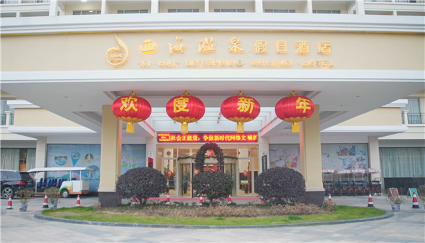 春節即將來臨,西海溫泉園區和接待大廳年味十足,充滿了節日的喜慶?!澳壳?,我們春節客房和溫泉的預定情況都在持續增長,預計溫泉的日接待量的話會在2000-3000左右,客房春節期間預計接待量在400間左右?!蔽骱厝偃站频隊I銷部策劃主管吳靜表示,“春節快來了,我們也在在沿路的燈桿上做了一些新春道旗、懸掛燈籠。酒店、溫泉大堂也布置了一些氛圍小掛件、美陳,讓客人們可以拍照打卡,同時還推出了‘溫泉+年夜飯’迎春促銷活動?!保S杰、楊旭、秦秀奇)