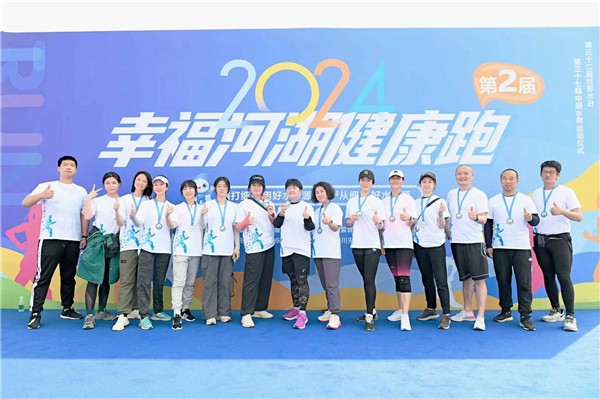每一個奔跑身影背后,都有溫情貼心的守護。沿途布置了4處物資補給站,為每一位跑步者備齊飲用水、食物、葡萄糖藥品等,并配備醫護人員隨行,為環湖跑保駕護航?!俺硕c發放節水、保護河湖宣傳資料,我們還設置了有獎知識競答,通過趣味問答形式,激發起更多人對水資源的愛護和重視,將健康生活方式、美好生活的理念傳遞給大家,帶動全民健身,低碳生活?!敝鬓k方工作人員在采訪中說到。