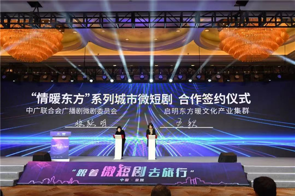 為貫徹廣電總局“跟著微短劇去旅行”文件精神,在“跟著微短劇去旅行”主題論壇上啟明東方總裁王秋和中國廣播影視社會組織聯合會廣播劇微劇委員會正式簽約啟動“情滿東方”系列城市微短劇創作計劃,雙方將合作打造城市微短劇。