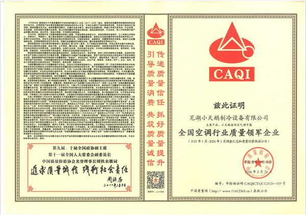 近日,小天鵝空調斬獲由中國質量檢驗協會頒布的“全國空調行業質量領軍企業”“全國空調行業質量領先企業”“全國空調行業質量領先品牌”以及“全國質量檢驗穩定合格產品”四項權威大獎。