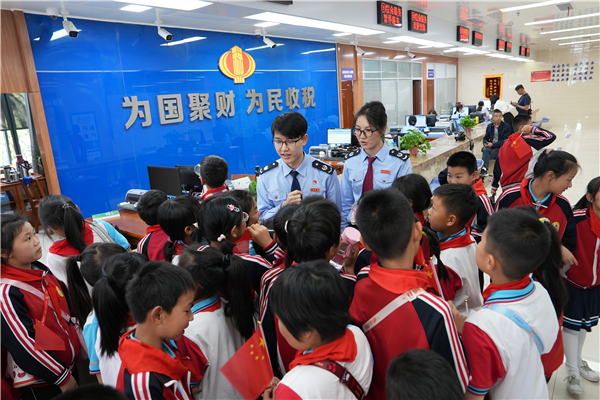 革命先輩創立了紅色稅收的光輝業績,為如今稅收事業的發展奠定了堅實的基礎?!按┰健被?024年的上海市松江區稅務局的智慧辦稅服務廳內,VR可視眼鏡、雙屏互動系統等智能產品為稅收服務增添了“科技感”。金寨縣希望小學的同學們通過視頻遠程參觀了智慧辦稅服務廳,感受著現代科技帶來震撼。