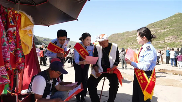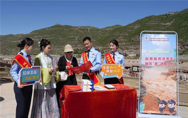 4月23日,在第33個全國稅收宣傳月期間,延安市稅務局、宜川縣稅務局兩級聯動,組織延安稅務張思德服務隊走進壺口瀑布景區,開展“稅惠到坊”—稅費服務進景區活動,為廣大游客和商戶送去最新的稅費優惠政策,讓稅費優惠的春風吹進萬家。