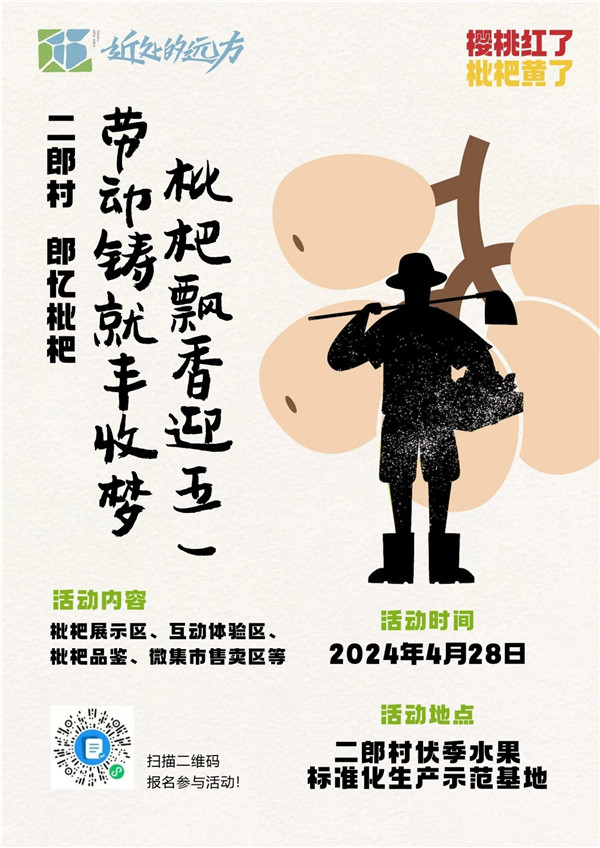 在即將到來的4月28日二郎村郎憶枇杷節現場,還將有枇杷品鑒、DIY互動體驗區、微集市售賣、枇杷王選舉等一系列豐富多彩的活動,讓我們一起見證這場枇杷盛宴,共享豐收帶來的喜悅!