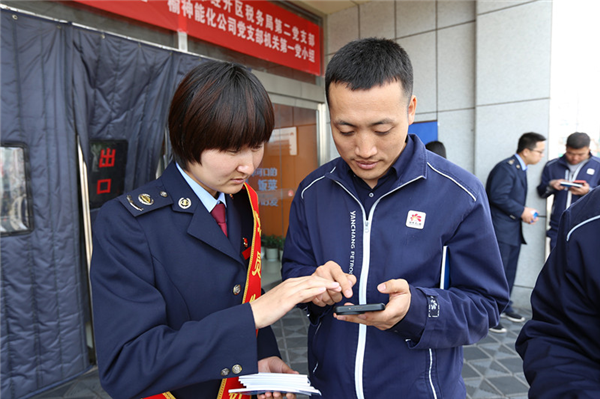 在陜西榆能化學材料有限公司活動現場,企業職工向稅務干部介紹了新興氫能、風能、太陽能等各類新型能源和儲能方式,在研討發言中暢談“新質生產力”對傳統產業帶來的影響以及資源綜合利用、提高可再生能源供給能力的前景。稅務青年干部圍繞個人所得稅匯算清繳及個人所得稅手機APP操作展開專題培訓,并就申報過程中產生的易錯點逐一進行提示解析、現場問答。