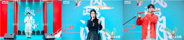 國風音樂人等什么君、張曉涵、蕭憶情演唱的《同舟》《炎黃》《君臨天下》,劍舞翩翩,琴音悠揚,非遺技藝與江湖氣息相互映襯,讓非遺文化在江湖故事中得以傳承。國風音樂人祥嘞嘞與川劇演員老師合作抖音國風熱門音樂《鴛鴦戲》,婉轉細膩的唱腔和川劇柔美的身段相結合,令觀眾對川劇有了初步的認知與了解。國風音樂人云汐身穿馬面裙,手拿瀘州非遺油紙傘,舞臺上演唱的《離人賦》《故事還長》等歌曲,既有江湖兒女快意恩仇的豪情,又有愛情里細水流長的柔情;以及國風音樂人劉豐的舞臺,都巧妙的融合了非遺文化,以音律助力非遺文化破圈。