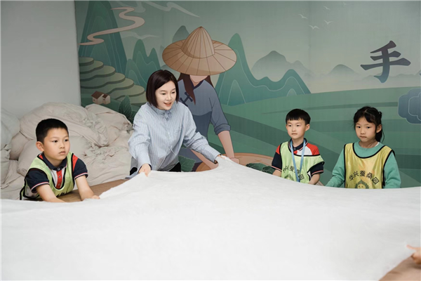在育蠶房里,游客們近距離觀察“熟蠶上山”吐絲全過程;在蠶絲被制作間里,各種款式琳瑯滿目;展陳柜上,創新的桑蠶手工藝品叫人稱道……2023年開始,宋瑩瑩就抓住“研學游”的潮流,與新昌縣中醫院、新昌縣讀書聯盟、青少年活動中心以及相關中小學等對接,開展公益“研學游”活動,讓廣大中小學生在親身體驗中增長知識,感受蠶桑文化的魅力,同時培養觀察、探究和合作能力。