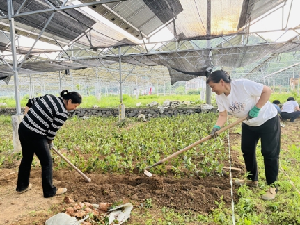 5月10日,走進商南縣青山鎮青山社區20畝光伏基地,旋耕機正在來回穿梭松解土地,群眾正在清除雜草、挖溝、栽種油茶苗,現場一派繁忙景象。