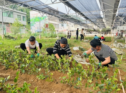 青山社區在“農光互補”項目建設初期,為了實現優勢互補、土地再利用,減少水土流失,在搭建光伏板的時候,設計高度最矮的地方離地不低于2.5米,保證了農業種植的通風、采光的條件,在行與行之間保證了至少6.5米的距離,保證了在農業種植的時候可以滿足小型機械作業。與此同時,油茶的種植也美化了光伏基地環境,豐富茶產業業態,打開農旅融合發展的全產業鏈通道,為實現鄉村振興開辟了新路徑。