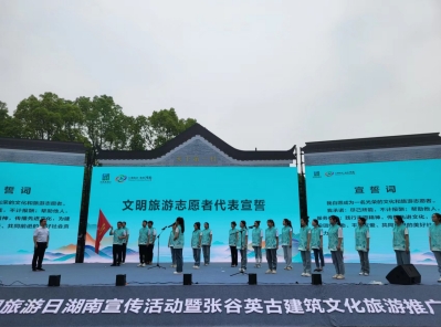 活動現場,除了精彩紛呈的文藝表演、精心制作的文旅宣傳片和特色旅游產品展示外,文明旅游志愿者現場進行了宣誓并接受授旗,10個傳統村落負責人上臺宣讀了《湖南省傳統村落保護利用倡議書》,倡導大家共同守護文化根脈、共建傳統村落的美好未來。