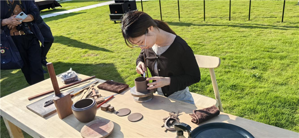 現場還有茶藝和茶道表演、插花、花瓶拉坯、古琴演奏、舞蹈和玉成窯非遺書法、銘刻、制作等。(成平)