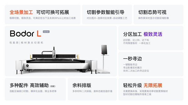 “可切可換可拓展”的L系列激光切板機,還擁有多項特色的智能黑科技。