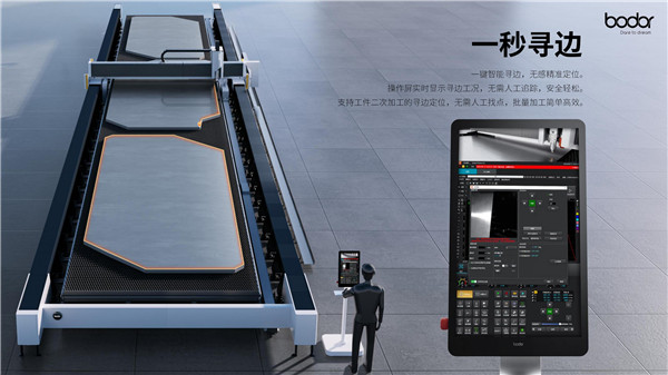 它特有的一秒尋邊功能,不僅能夠無感精準定位板材邊緣,還支持工件二次加工的尋邊定位,無需人工找點,批量加工簡單高效。尋邊工況通過操作屏實時顯示,徹底改變以往人工尋邊的繁瑣與勞累,既安全又省心。