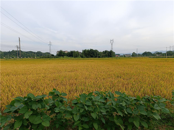 圖為:豐收的早稻與田埂邊生長茂盛的大豆。袁靜?攝